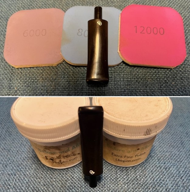 I sanded the stem with 320-3500 grit sandpaper to further blend in the repairs on the surface. I wiped the stem down with an Obsidian Oil cloth after each sanding pad. It began to look very good.