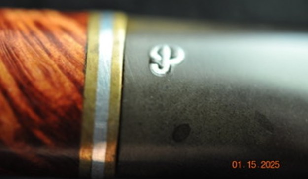 The next two photos show the stamping on the underside of the shank. It is faint in spots but otherwise clear and readable as noted above. The gold crown on the stem top is in good shape.