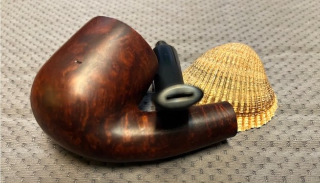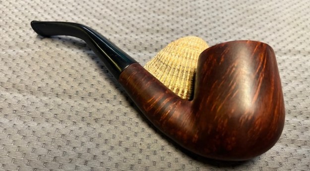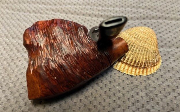 This unusual Astley’s Root Briar Specialty Sitter with a saddle vulcanite stem is a great looking pipe now that it has been restored. The briar is clean and the carving and rustication on the sides and the grain on the rim top and heel really came alive. The rich stains gave the finish a sense of depth on the rustication with the polishing and waxing. I put the stem back on the bowl and buffed the pipe with Blue Diamond on the buffing wheel using a light touch on the briar. I gave the bowl multiple coats of Conservator’s Wax and the stem multiple coats of carnauba wax on the buffing wheel. I buffed the pipe with a clean buffing pad to raise the shine. I hand buffed the pipe with a microfiber cloth to deepen the shine. The finished Astley’s Root Briar Sitter really is a beauty and feels great in the hand and looks very good. Give the finished pipe a look in the photos below. The dimensions of the pipe are Length: 5 ½ inches, Height: 2 inches, Outside diameter of the bowl: 1 ½ inches x 2 inches, Chamber diameter: 1 inch. The weight of the pipe is 67 grams/ 2.36 ounces. This beautiful Freehand pipe will soon be on the rebornpipes store in the British Pipemakers Section. It should make a great smoker for the next trustee. Thanks for reading this blog and my reflections on the pipe while I worked on it. It was a fun one to work on.