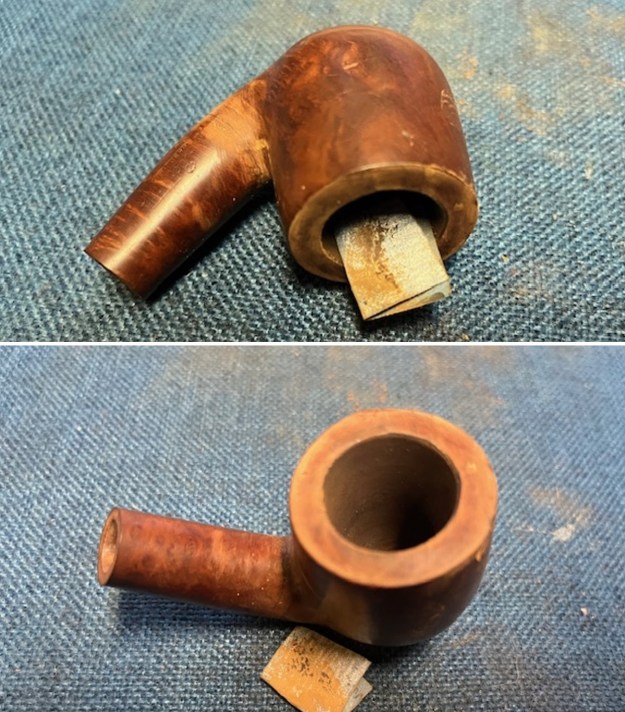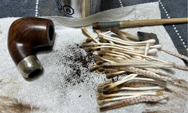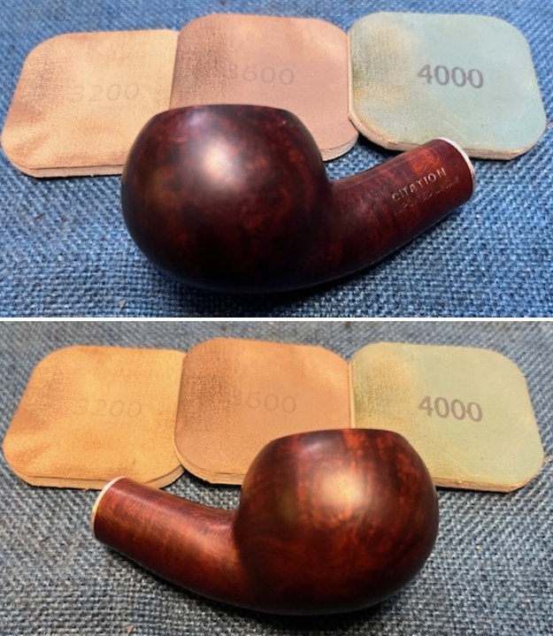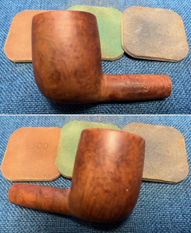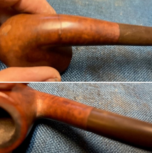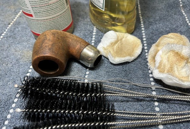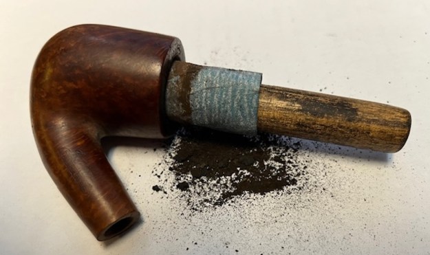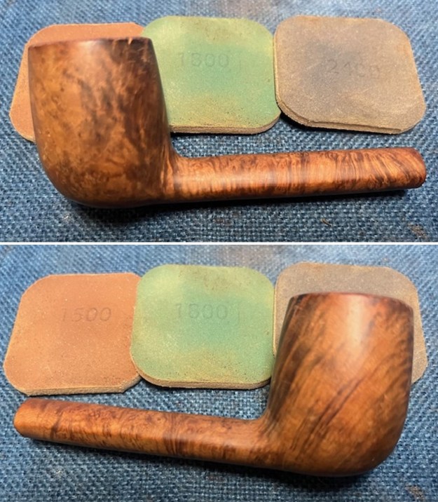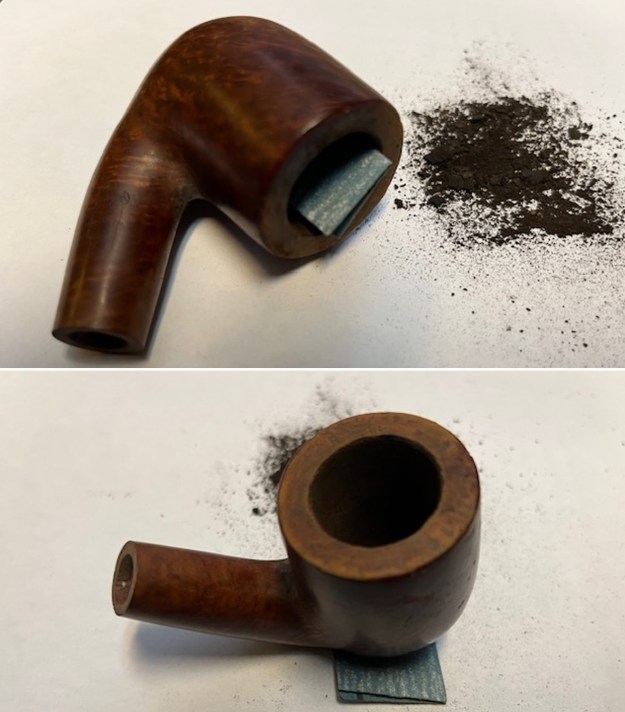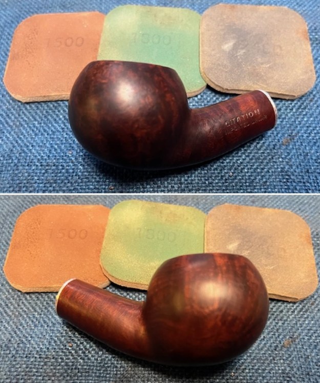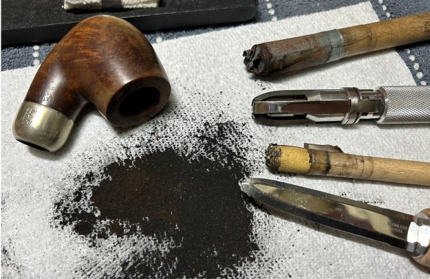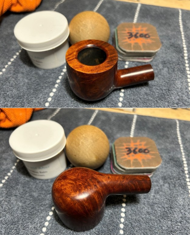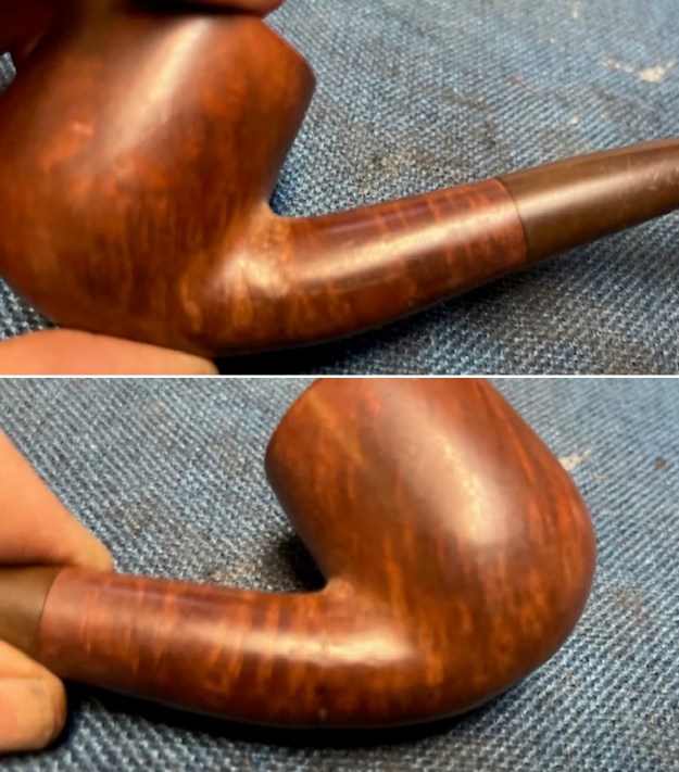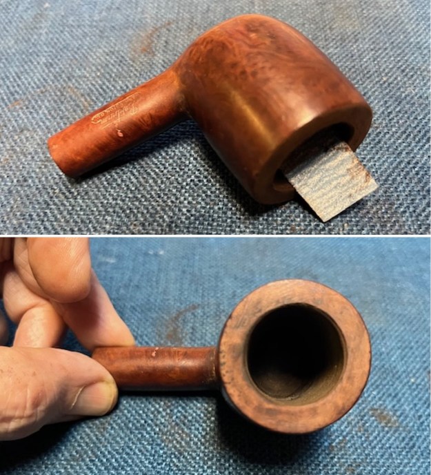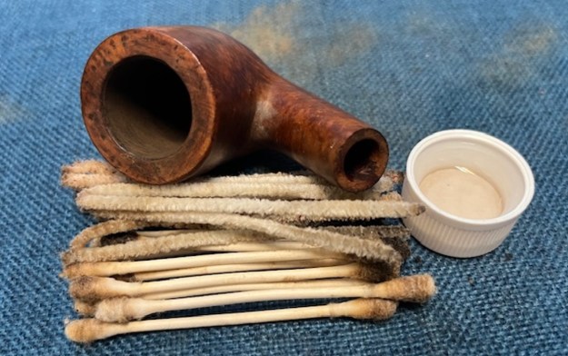 Jeff had done an amazing cleanup of the pipe. He reamed the cake with a PipNet reamer and cleaned up that with a Savinelli Fitsall Pipe Knife. He scrubbed the internals of the bowl and stem with alcohol, cotton swabs and pipe cleaners. He scrubbed the externals with undiluted Murphy’s Oil Soap and rinsed the bowl off with running water. He soaked the stem in Briarville’s Pipe stem Deoxidizer and once it had soaked, rinsed it off with warm water to remove the residual solution. He dried it off and rubbed it down to remove any oxidation that was still on the stem. The pipe looked very good when I received it.