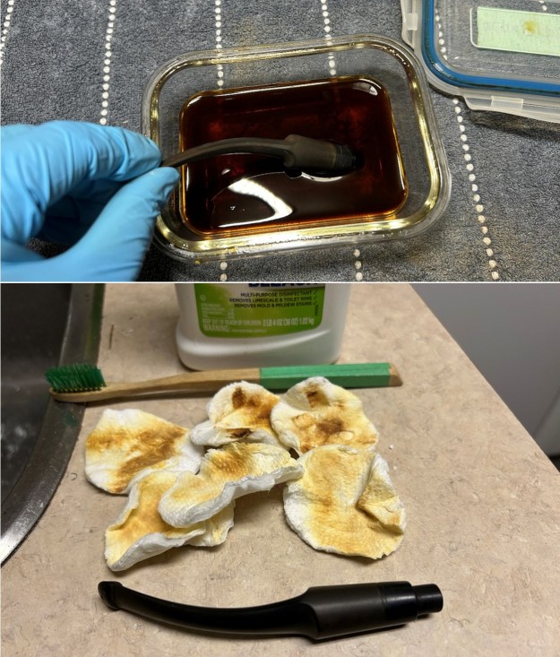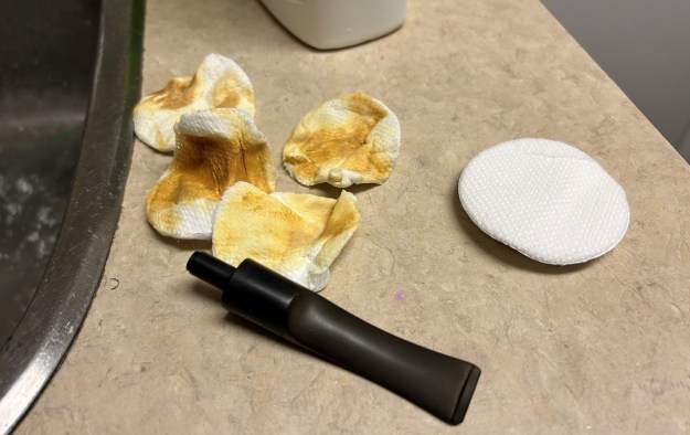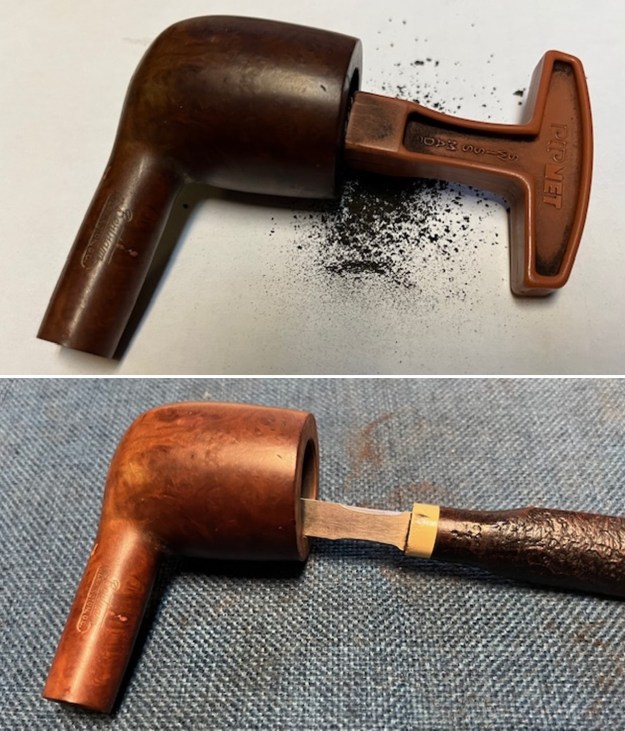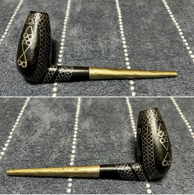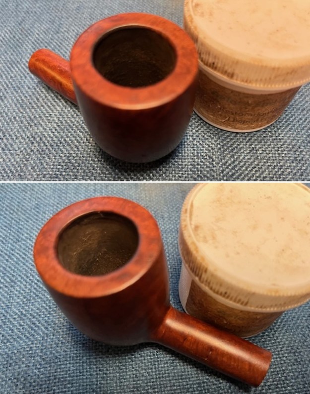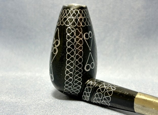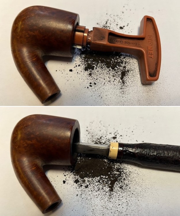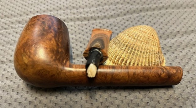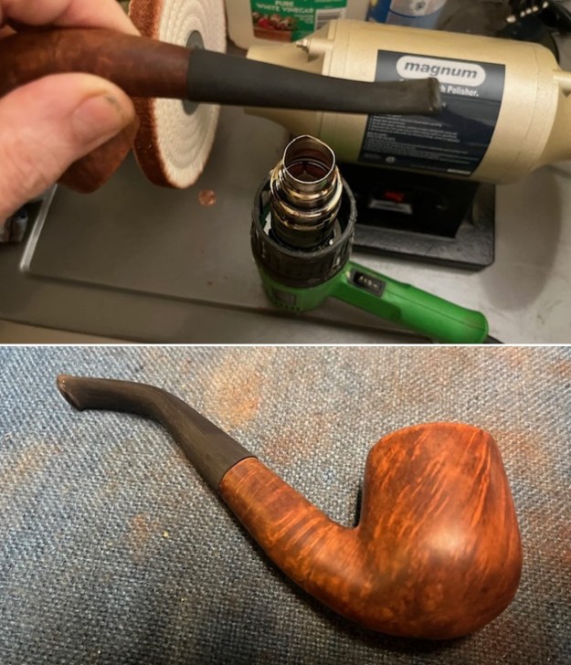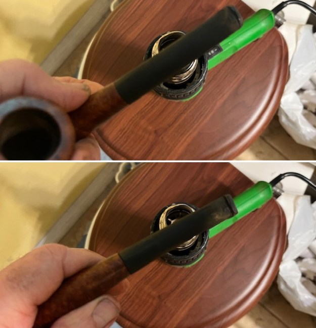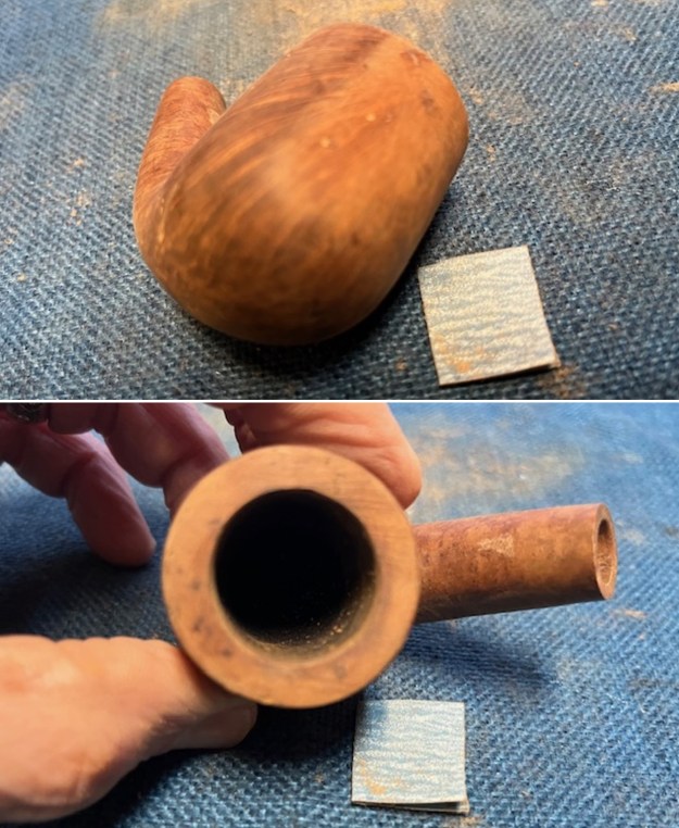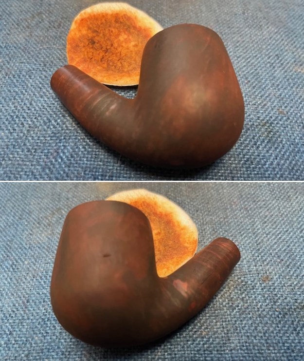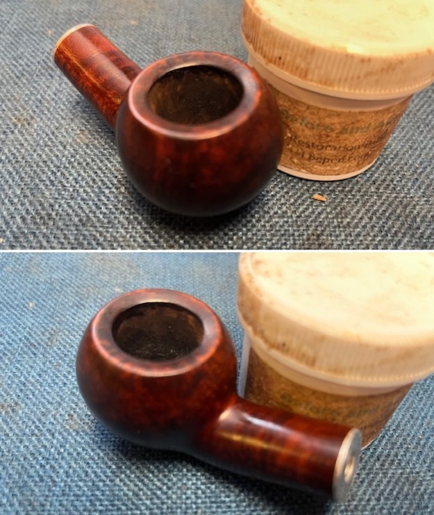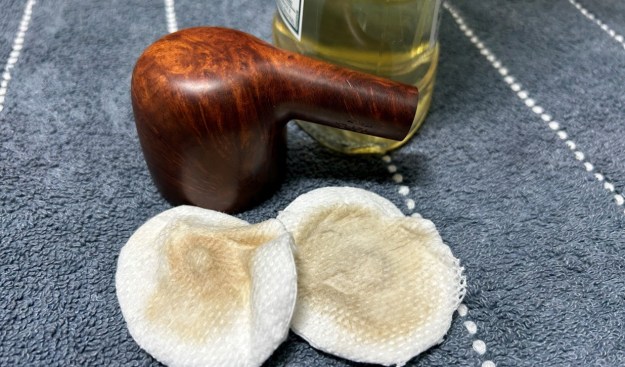 Jeff had done an amazing cleanup of the pipe. He reamed the cake with a PipNet reamer and cleaned up that with a Savinelli Fitsall Pipe Knife. He scrubbed the internals of the bowl and stem with alcohol, cotton swabs and pipe cleaners. He scrubbed the externals with undiluted Murphy’s Oil Soap and rinsed the bowl off with running water. He soaked the stem in Briarville’s Pipe stem Deoxidizer and once it had soaked, rinsed it off with warm water to remove the residual solution. He dried it off and rubbed it down to remove any oxidation that was still on the stem. The pipe looked very good when I received it.