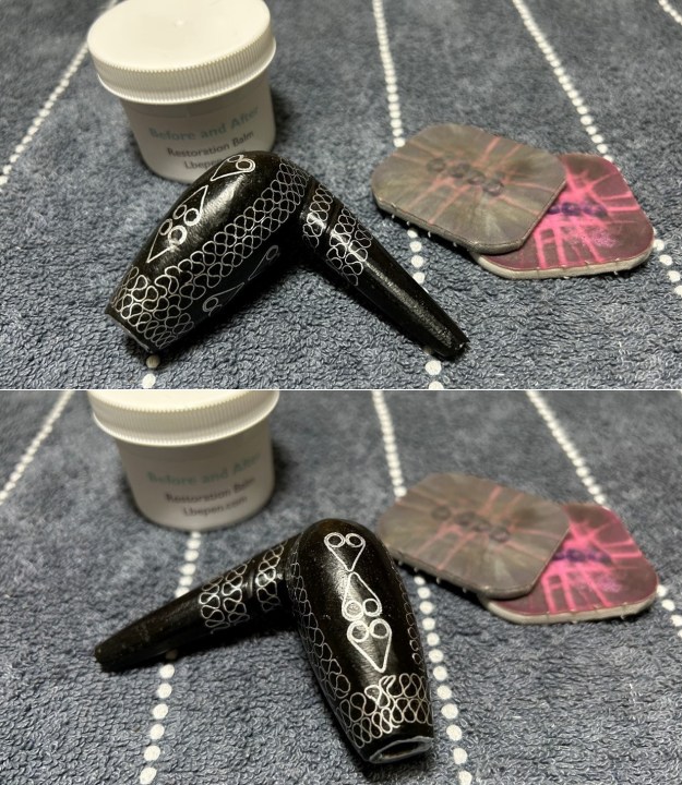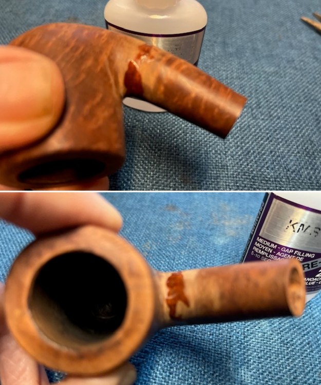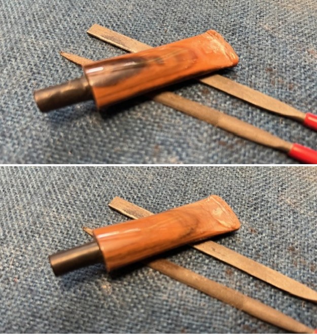 I smoothed out the repaired surface and the rest of the stem with 320-3500 grit sanding pads. I wiped the stem down after each pad with Obsidian Oil.
