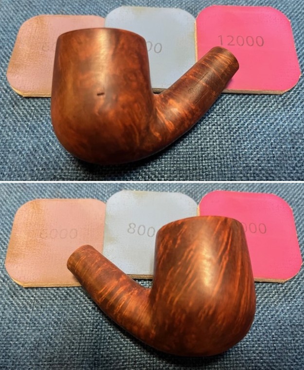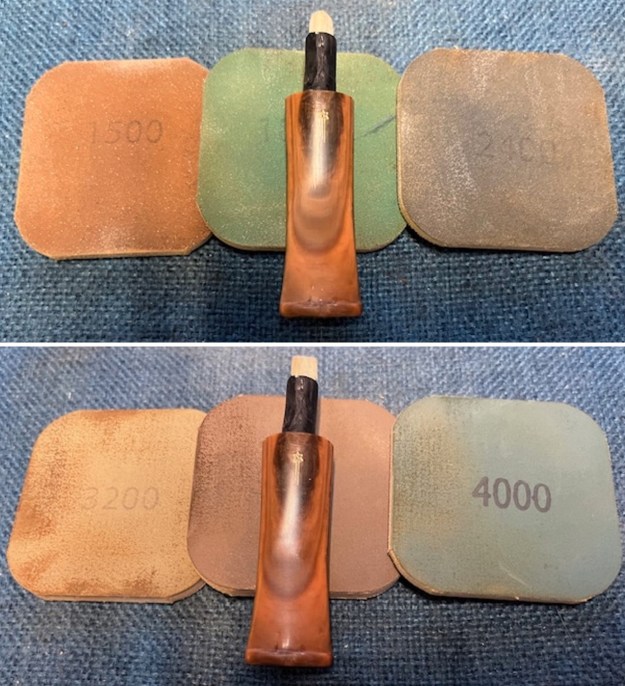 I polished the briar bowl and shank with micromesh sanding pads – dry sanding with 1500-12000 grit sanding pads. I wiped it down with a damp cloth after each pad to remove the debris. The bowl took on a rich glow.
