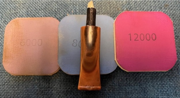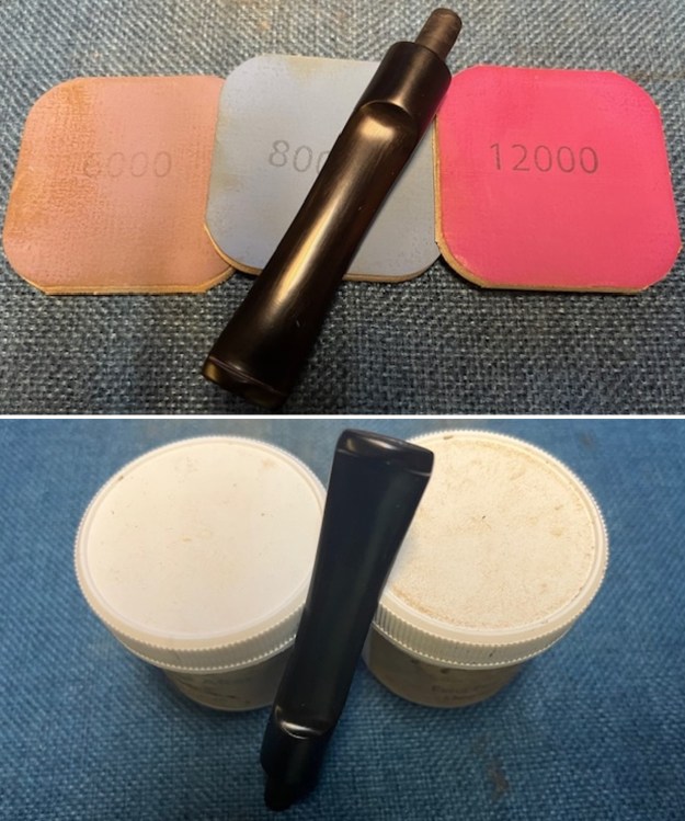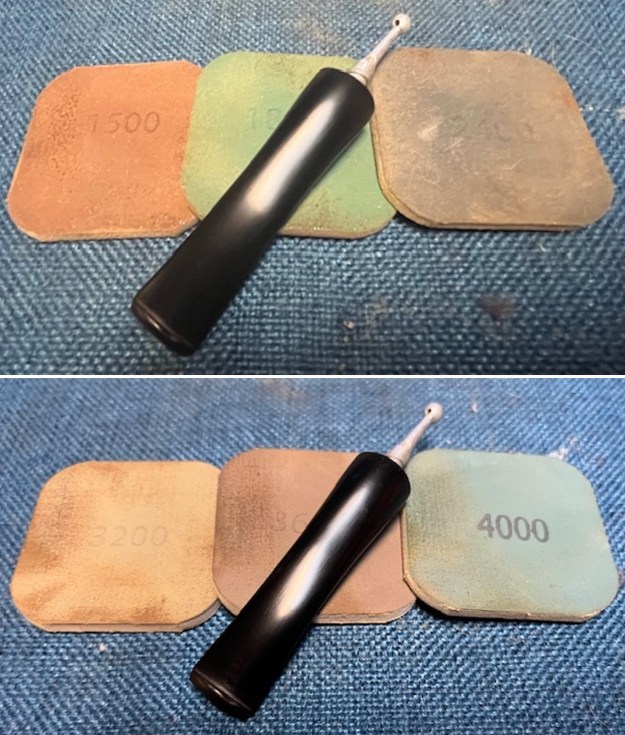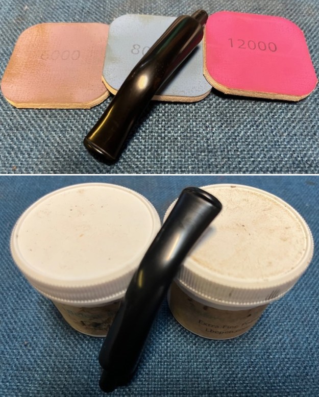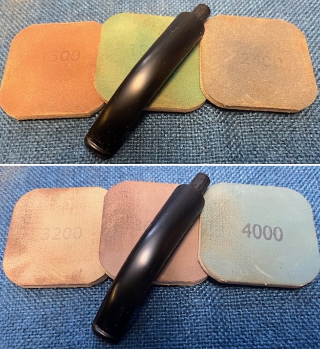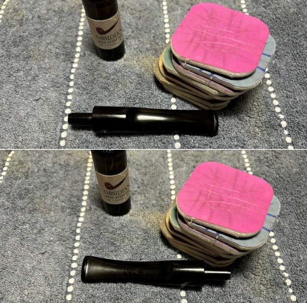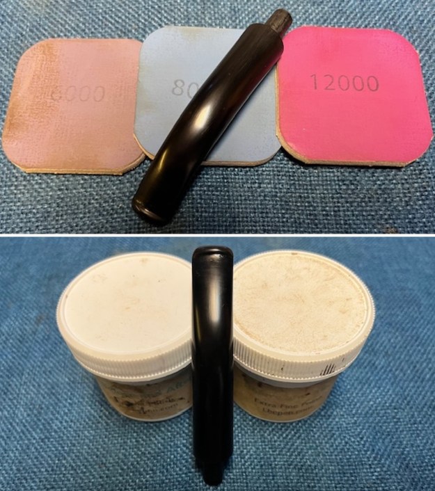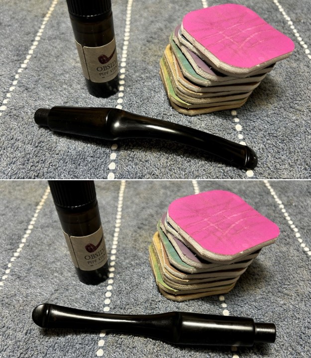 I polished the vulcanite stem with micromesh sanding pads – 1500-12000 grit pads. I wiped it down with Obsidian Oil after each sanding pad. I used Before & After Pipe Polish – both Fine and Extra Fine to further polish the stem.