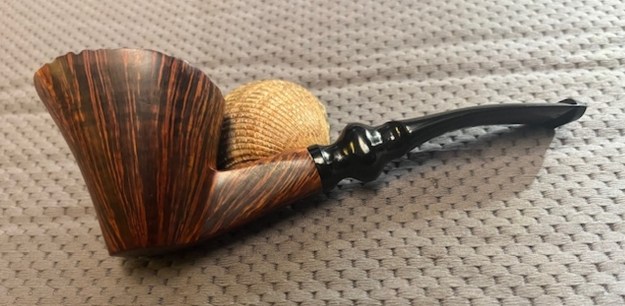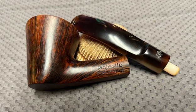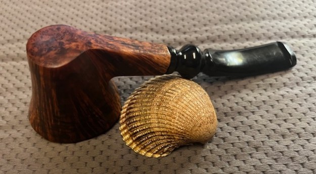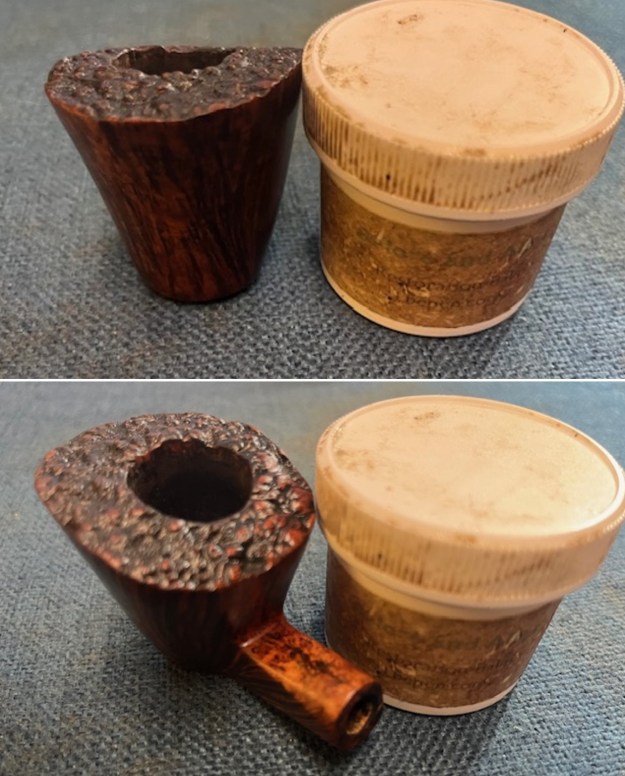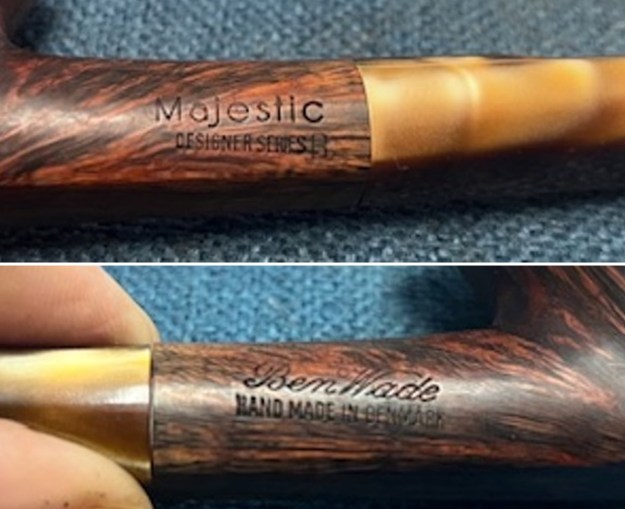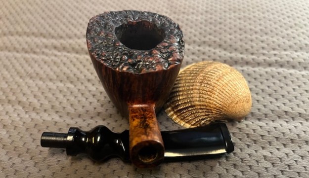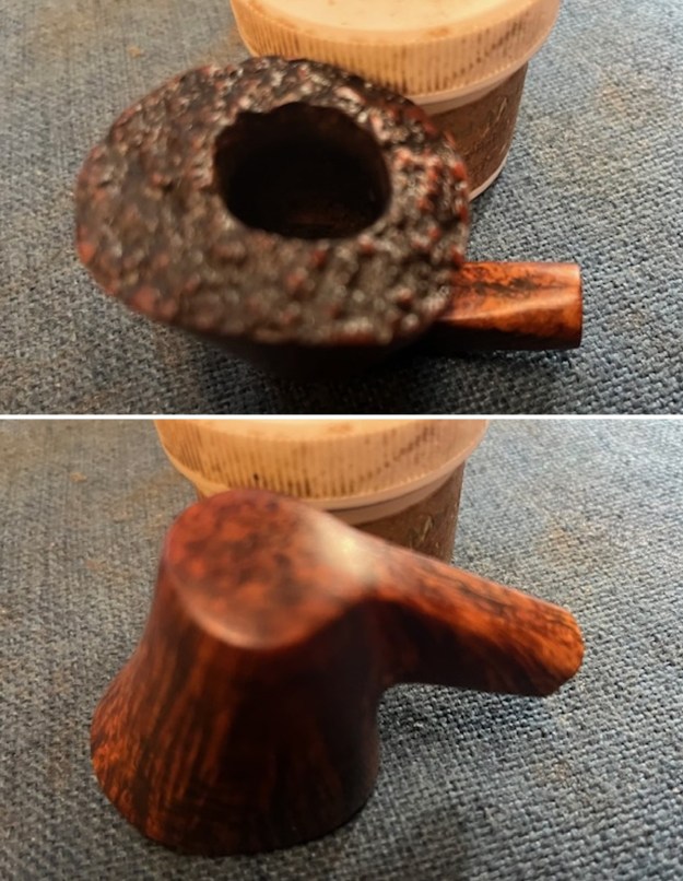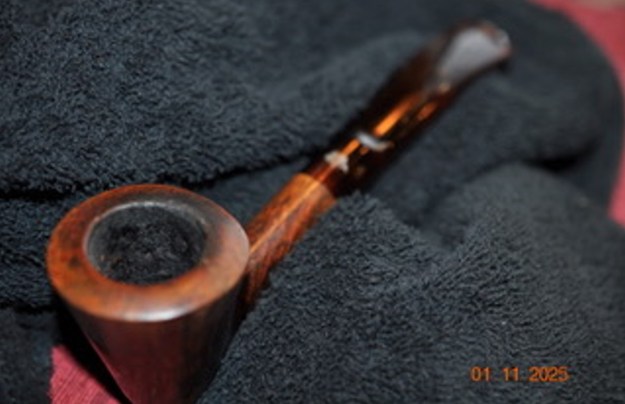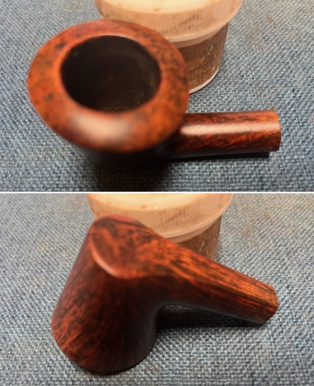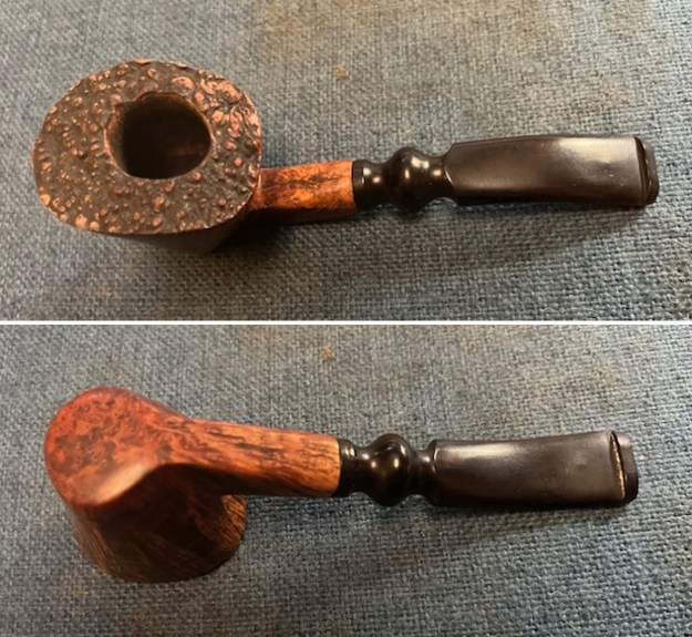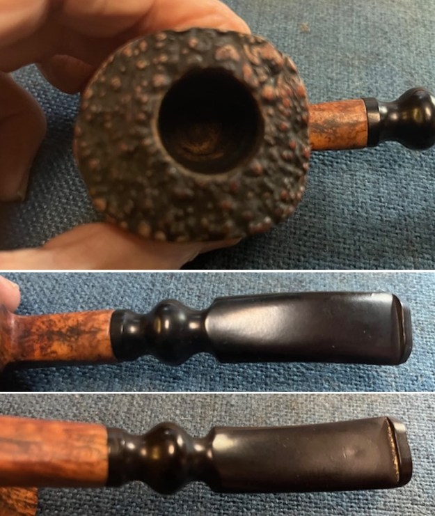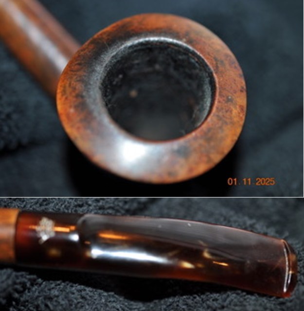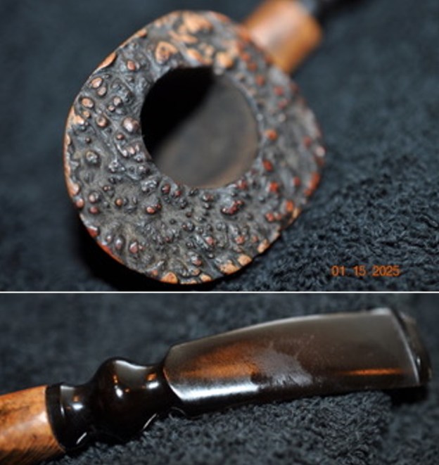 I took a photo of the stamping on the underside of the shank You can see that it is stamped as noted above. It is clear and readable. I took the pipe apart and took a photo of the pipe. It is a good looking pipe and has an interesting finish on the bowl and shank.