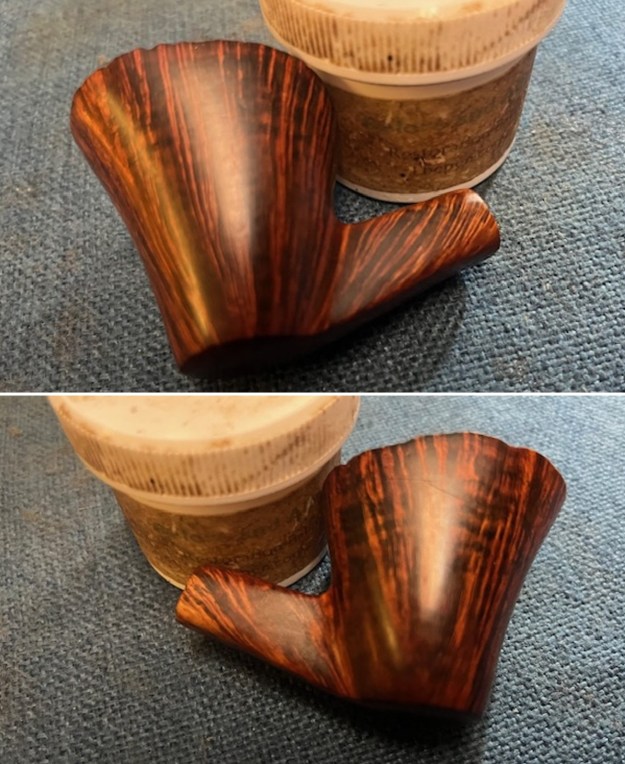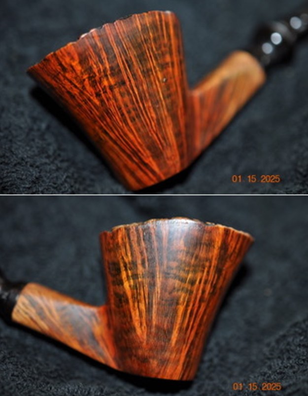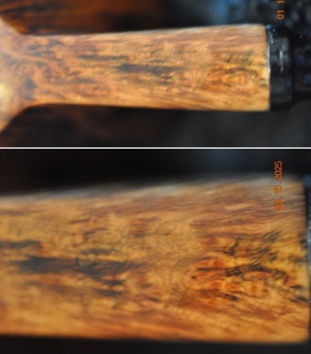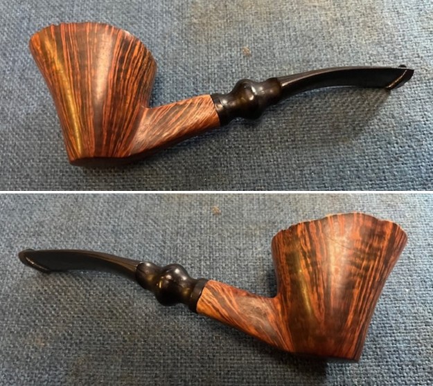 Jeff took photos of the sides and heel of the bowl to show the condition of the finish. You can see the well done shape and the interesting combination of finishes on the bowl and shank. It looked very good. The damaged rim top and edge of the bowl is not visible in the photos below.