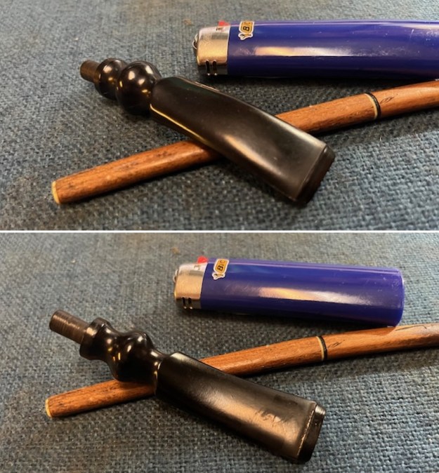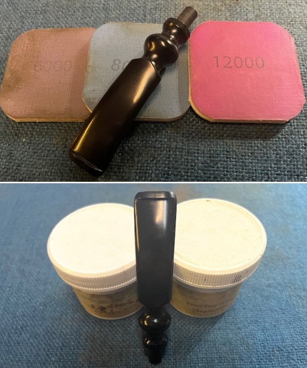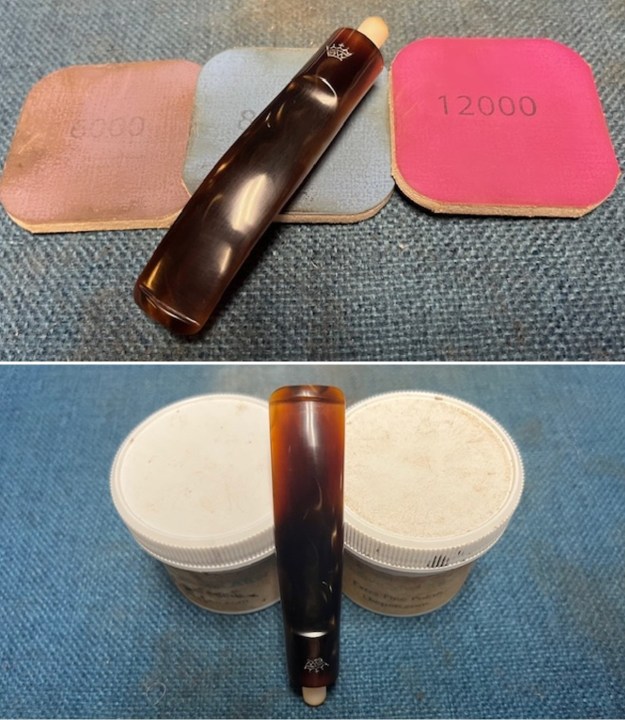 I polished the stem with 1500-12000 grit sanding pads. I wiped it down after each sanding pad with Obsidian Oil. I polished it with Before & After Pipe Stem Polish – both Fine and Extra Fine. I gave it another wipe down with Obsidian Oil and set it aside to dry.
