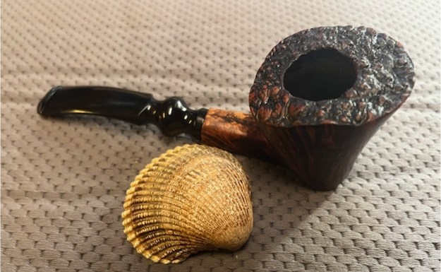 I am really happy to have Jeff’s help on cleaning up the pipes that we pick up along the way. He reamed the bowl with a PipNet pipe reamer and cleaned up the reaming with a Savinelli Fitsall Pipe Knife. He scrubbed out the internals with alcohol, pipe cleaners and cotton swabs until the pipe was clean. He scrubbed the exterior of the bowl with Murphy’s Oil Soap and a tooth brush to remove the grime and grit on the briar and the lava on the rim top. The finish on the shank and bowl sides was quite coated with varnish and was shiny. The rim top was heavily burned and the inner edge was badly burned. The lightly rusticated portion on the right side was almost smooth from the burn damage. It was a huge mess. Jeff scrubbed the stem with Soft Scrub All Purpose Cleaner to remove the majority of the grime. When the pipe arrived here in Vancouver it looked very good.