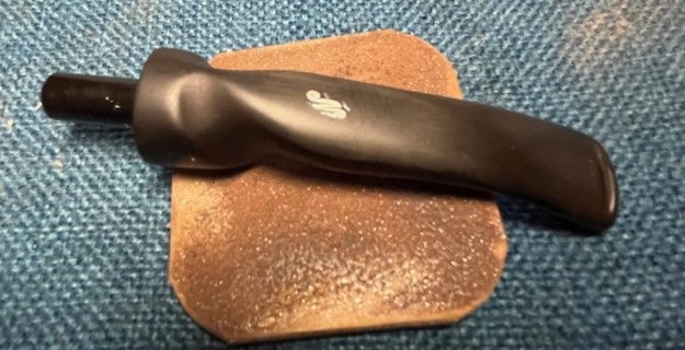 I sanded the stem with 220 grit sandpaper to smooth out the marks from the Dremel. I followed that by sanding it with 320-3500 grit sanding pads to further blend down the sanding areas. I wiped the stem down between pads with an Obsidian Oil cloth to remove the sanding debris from the stem.