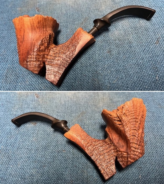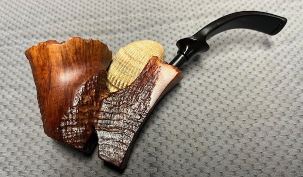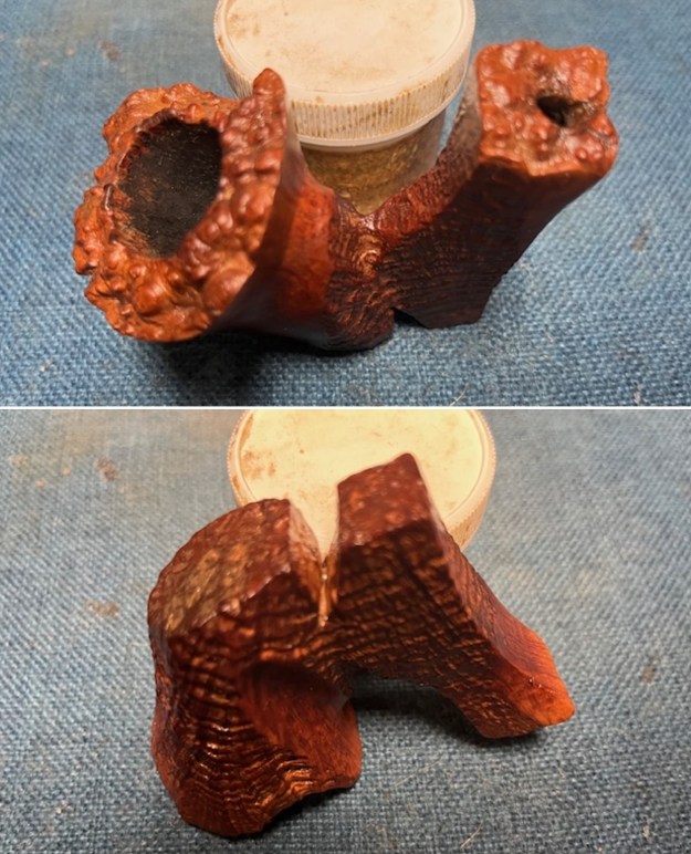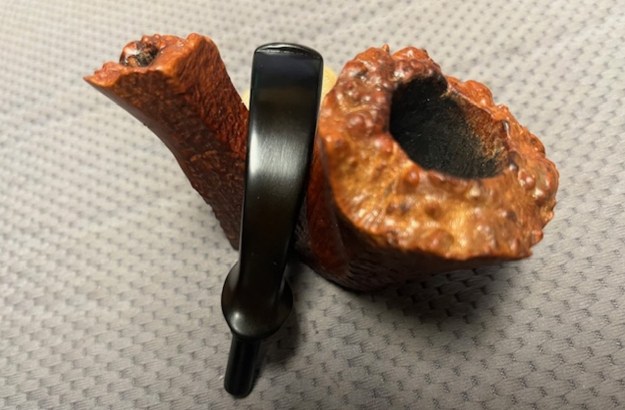 Jeff had cleaned up the pipe following his normal cleaning process. In short, he reamed the bowl and then cleaned up the reaming with a Savinelli Fitsall Pipe Knife. He scrubbed the bowl with undiluted Murphy’s Oil Soap with a tooth brush. He worked over the lava and debris on the plateau rim top and shank end and was able to remove it. He rinsed it under running warm water to remove the soap and grime. He cleaned out the inside of the shank and the airway in the stem with alcohol, cotton swabs, shank brushes and pipe cleaners. He scrubbed the stem with Soft Scrub and cotton pads to remove the debris and oils on the stem. He soaked it in Briarville’s Pipe Stem Deoxidizer to remove the remaining oxidation. He rinsed it with warm water and dried it off. I took photos of the pipe once I received it. It really looked good.