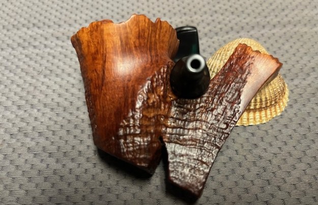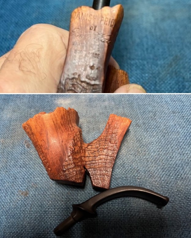 I took a photo of the stamping on the underside of the shank. You can see from the photo that it is faint but readable. It is clearer on the top half of the stamp than the lower but it is still readable. I removed the stem from the bowl and took a photo of the parts to give a sense of the beauty of the pipe.