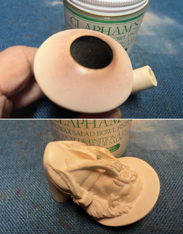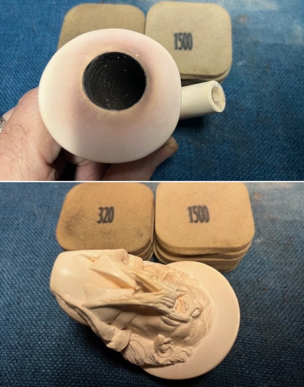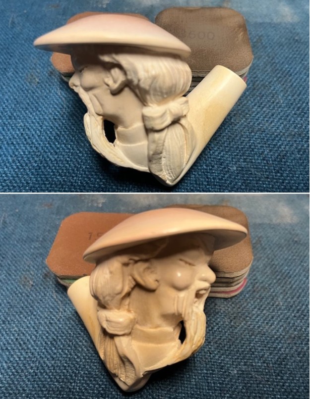 I polished the meerschaum with micromesh because it was in such good condition. I dry sanded it with 1500-12000 grit micromesh sanding pads. I wiped the bowl down after each sanding pad with a damp cloth.