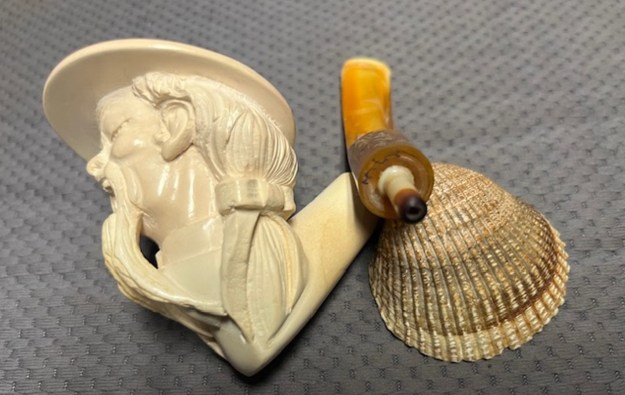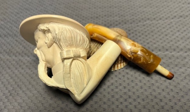 “Sunalp” Meerschaum refers to high-quality, carved pipes sold under the Sunalp brand, a US trademark associated with Erdal Sunalp from Los Gatos, CA, known for sourcing exquisite Turkish block meerschaum, often featuring intricate carvings of figures or animals, making them collector’s items valued for their craftsmanship and smoking properties.