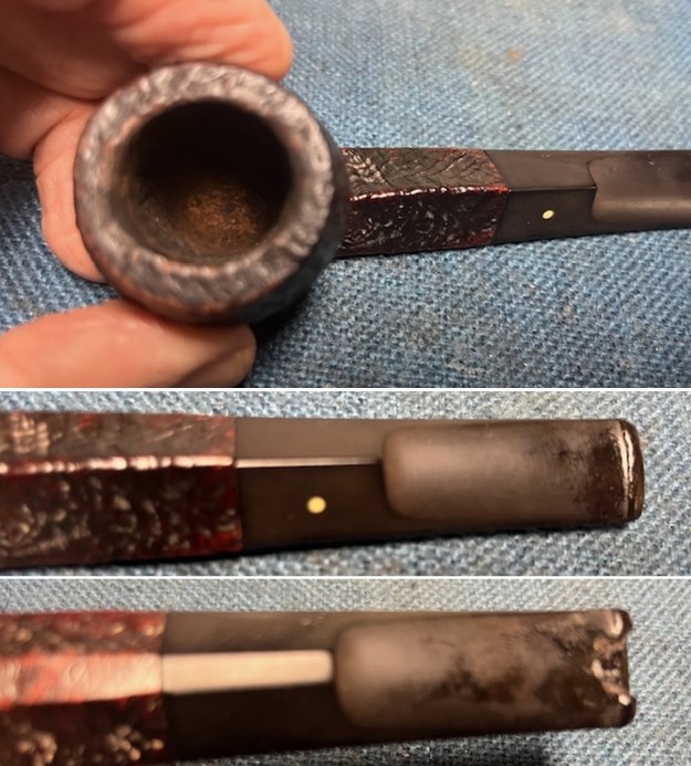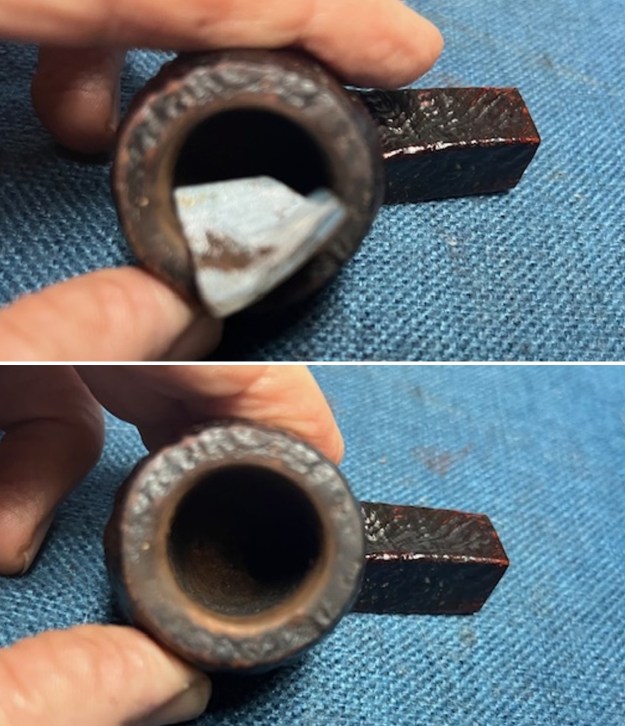 I took a photo of the rim top to show the condition. You can see the clean bowl and damage to the inner edge of the bowl on the front and back side of the bowl. The stem came out looking clean. The issues noted above are visible in the photos below.