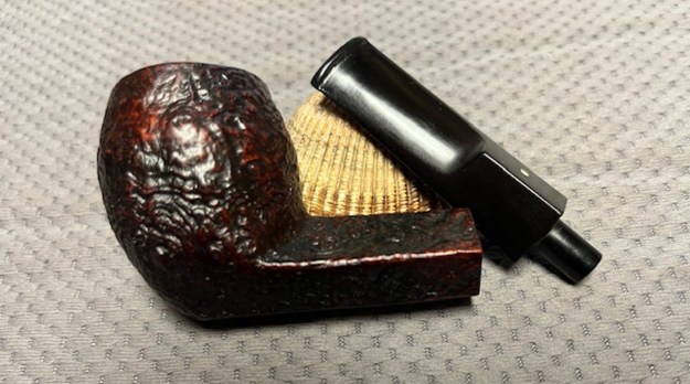 This 1956 Dunhill Shell Briar OX Saddle Stem Bulldog has a beautiful, unique Dunhill Sandblast finish made in 1985. The rich Shell Briar finish that is identified with some great grain around the bowl and shank. It has some great rugged sandblast that Dunhill specialized in making. The polished black vulcanite saddle stem adds to the mix. I put the stem back on the bowl and buffed the pipe with Blue Diamond on the buffing wheel being careful to not buff the stamping. I gave the bowl and the stem multiple coats of carnauba wax on the buffing wheel and followed that by buffing it with a clean buffing pad. I hand buffed the pipe with a microfiber cloth to deepen the shine. The finished Dunhill Shell Briar OX Straight Bulldog is quite nice and feels great in the hand. Give the finished pipe a look in the photos below. The dimensions of the pipe are Length: 5 inches, Height: 1 ¾ inches, Outside diameter of the bowl: 1 ¼ inches, Chamber diameter: ¾ of an inch. The weight of the pipe is 40 grams/1.41 ounces. This one will be staying here as I do some testing on the durability of the repair under normal conditions. Thanks for walking through the restoration with me as I worked over another beautiful pipe Thanks for your time.