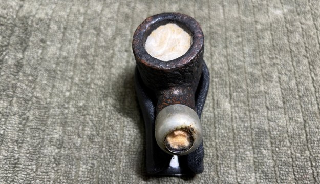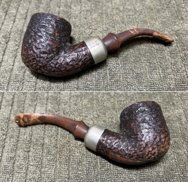 This was significant because, due to the markings being almost entirely worn on this pipe, there was nothing on the wood other than the number 301 – and I couldn’t tell an age from that. Charles Lemon from Dad’s Pipes also has a post about a 301, which he describes as coming from the “1970’s era”. Now, what’s interesting about Steve and Charles’ pipes is that the patch of briar which shows the marks is quite different from mine. Below are Steve’s, Charles’, and my pipes, respectively. The first two are sort of freeform oval-ish shapes. Third (mine) is a rectangle and I wonder if that indicates a different era. I don’t know, but if any of you reading this do, please let me know!