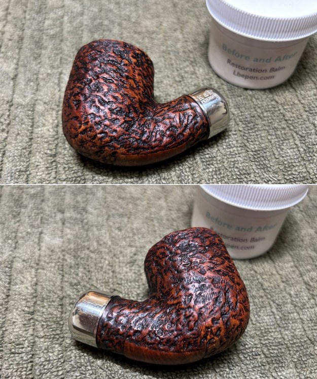 I rubbed some LBE Before & After Restoration Balm into the briar and let it sit for 30 minutes or so. The balm moisturizes the wood and gives a beautiful depth to the briar. I then buffed the stummel with a microfibre cloth.