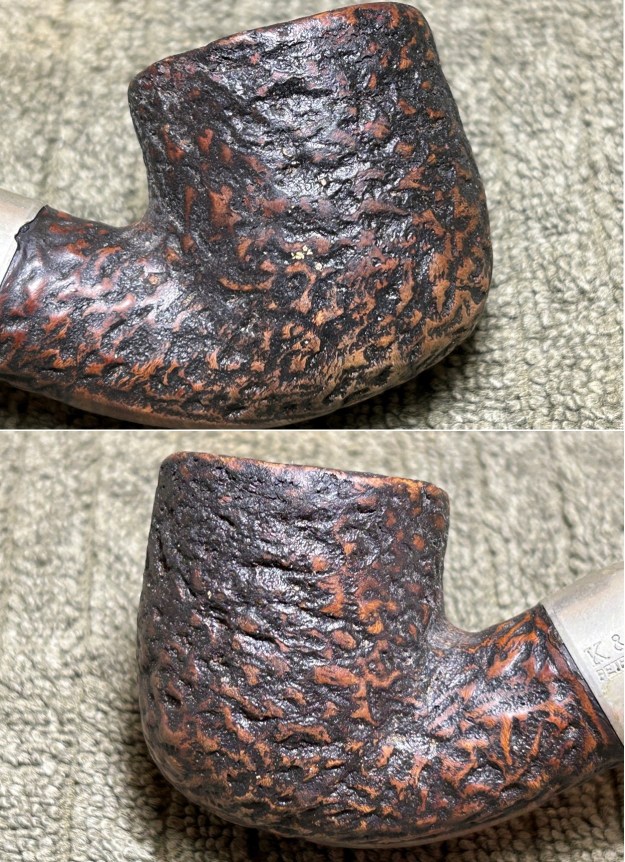The only markings to be found on this pipe are the 301 found on the underside of the stummel and the K&P [over] Peterson on the nickel ferrule.
