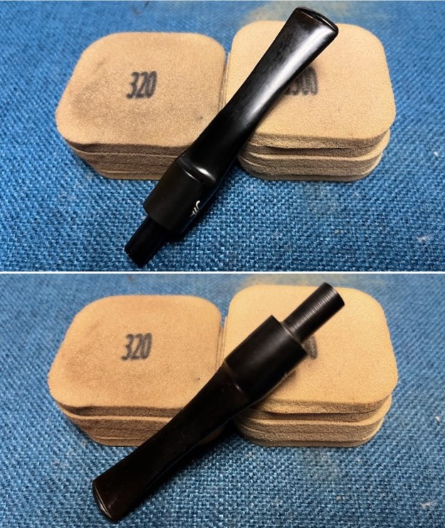 I sanded the stem with 320-3500 grit 2×2 inch pads. I wiped the stem down with an Obsidian Oil cloth after each sanding pad.