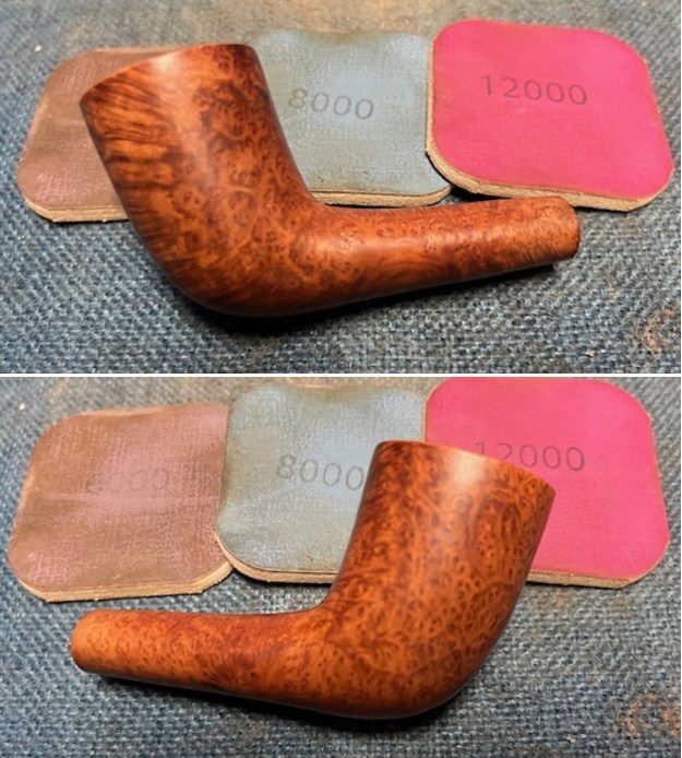 I polished the briar with 1500-12000 grit micromesh sanding pads to develop the shine. It began to look very good. It had a rich shine in the finish.