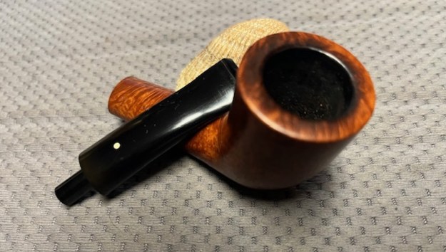 I polished the vulcanite with micromesh sanding pads – 1500-12000 grit pads. I wiped it down with Obsidian Oil after each sanding pad. I used Before & After Pipe Polish – both Fine and Extra Fine to further polish the stem.
