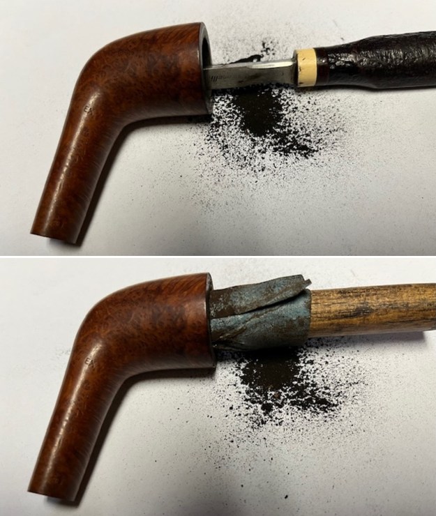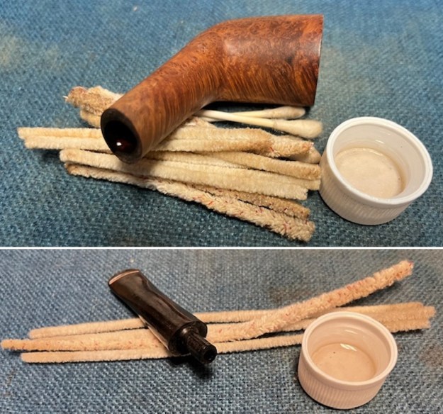 I cleaned out the inside of the shank and the airway in the stem with alcohol, cotton swabs and both bristle and regular pipe cleaners.