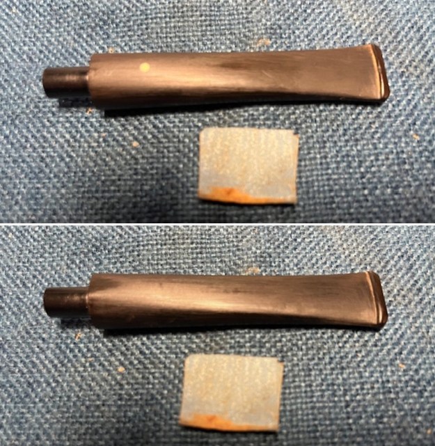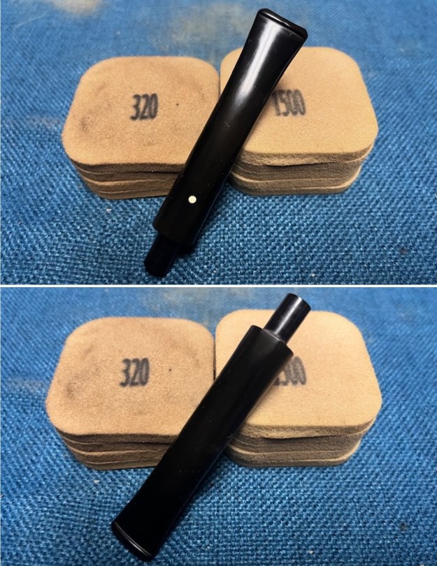 I sanded the stem with 320-3500 grit 2×2 inch pads. I wiped the stem down with an Obsidian Oil cloth after each sanding pad.