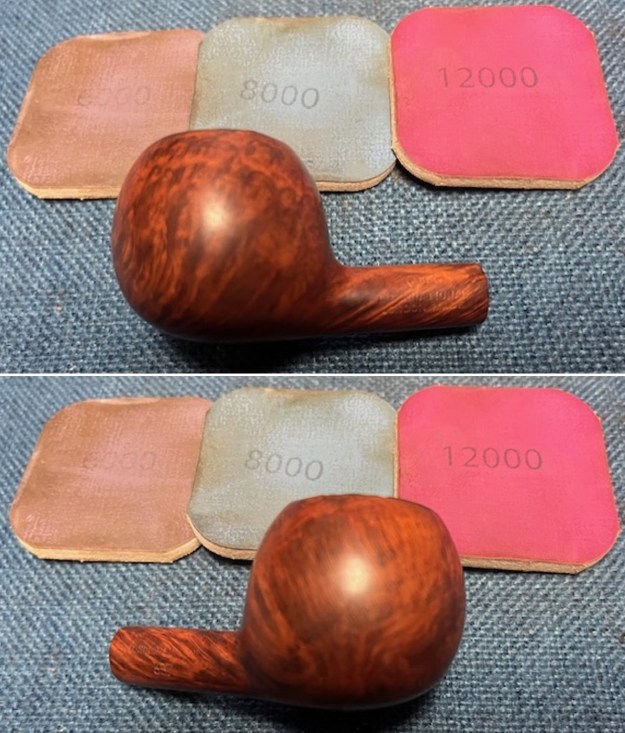 I polished the briar with micromesh sanding pads – dry sanding with 1500-12000 grit sanding pads. I wiped the bowl down with a damp cloth after each sanding pad. The pipe began to take on a rich finish.
