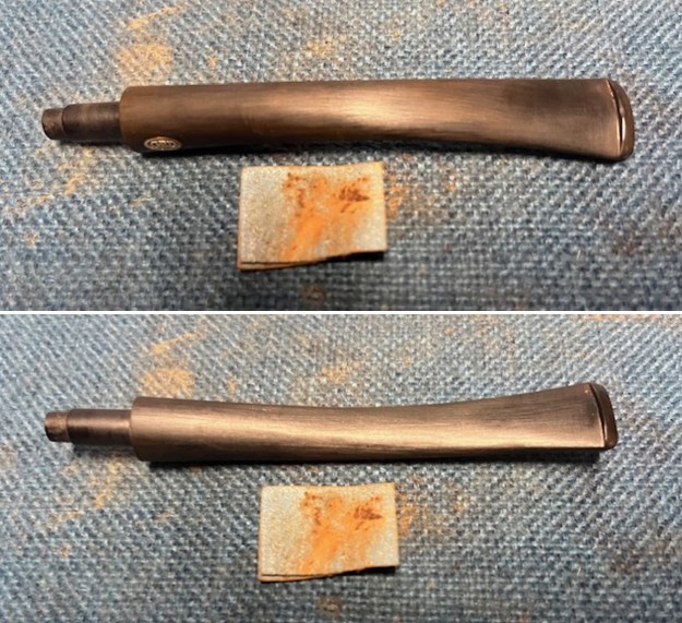 I sanded the stem with 320-3500 grit 2×2 inch pads. I wiped the stem down with an Obsidian Oil cloth after each sanding pad.
