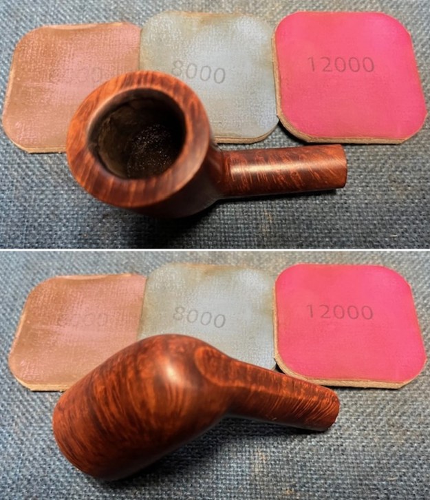 I polished the briar with micromesh sanding pads – dry sanding with 1500-12000 grit sanding pads. I wiped the bowl down with a damp cloth after each sanding pad. The pipe began to take on a rich finish.