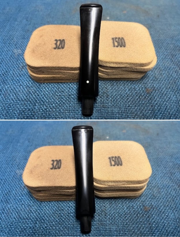 I sanded the stem with 320-3500 grit 2×2 inch pads. I wiped the stem down with an Obsidian Oil cloth after each sanding pad.