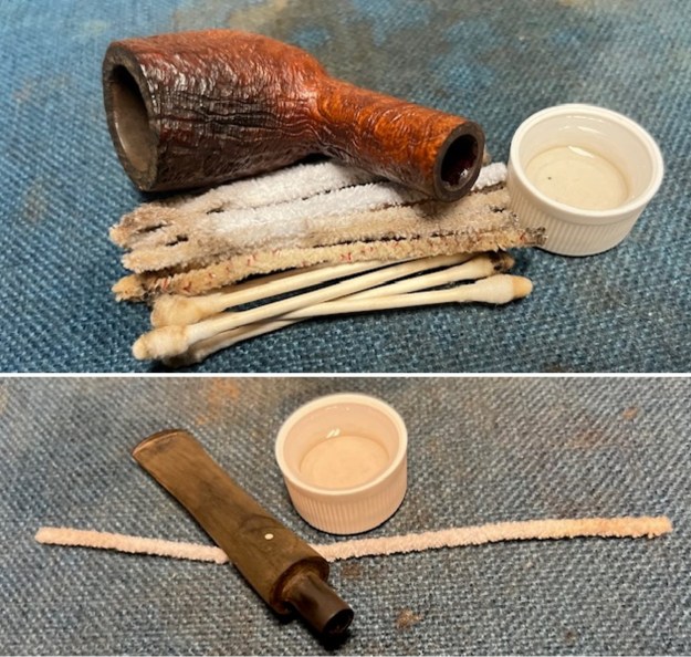 I cleaned out the inside of the shank and the airway in the stem with alcohol, cotton swabs and both bristle and regular pipe cleaners.