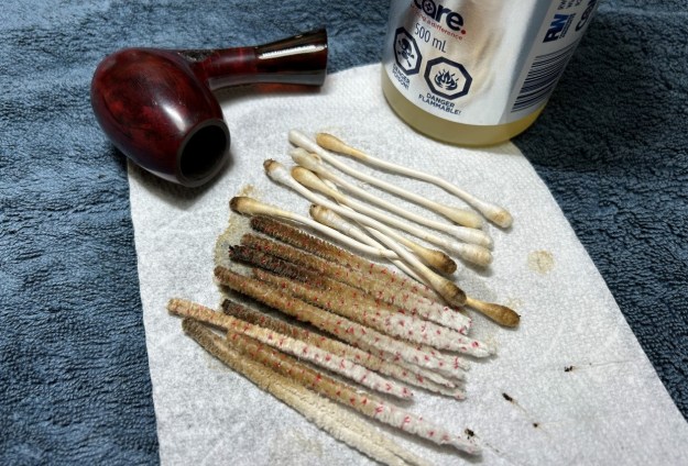 Similar to the stem, I then cleaned the stummel with both pipe cleaners and cotton swabs dipped in lemon-infused 99% isopropyl alcohol. It was fairly dirty, but nothing extraordinary.