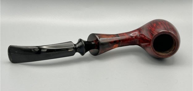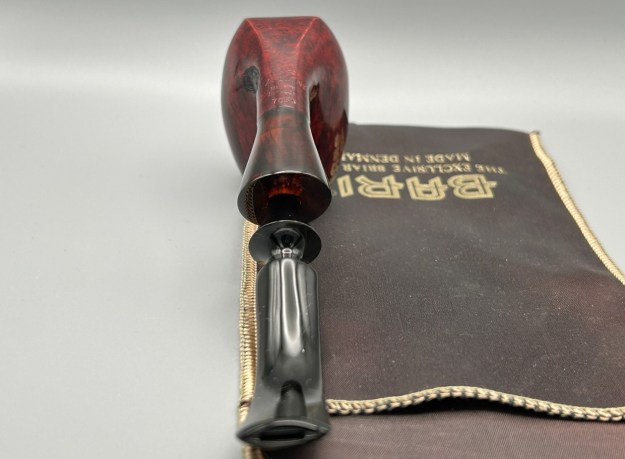 I recently got my hands on a few pipes, and this one caught my eye right away: it’s a Bari Excellent 7054 freehand egg. It’s a Danish beauty and it’s in lovely condition to start. It has a very attractive shank extension and sumptuous curves. I couldn’t help but think that this pipe deserves a new home and someone to light it up. Many of the pipes I just received came with their own pipe socks – and this is one of them. So if you want this pipe, you also get your very own Bari-branded pipe sock!