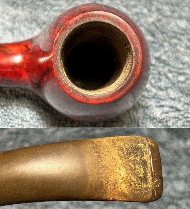 Let’s take a look at the state of the pipe. The stummel is in great condition. Minimal wear to the rim and the sides of the bowl. There are a couple of small fills, but nothing to worry about. The inside looks quite good, with only a small amount of cake. The stem is also in good shape – just some oxidation and calcification. But that just goes with the territory.