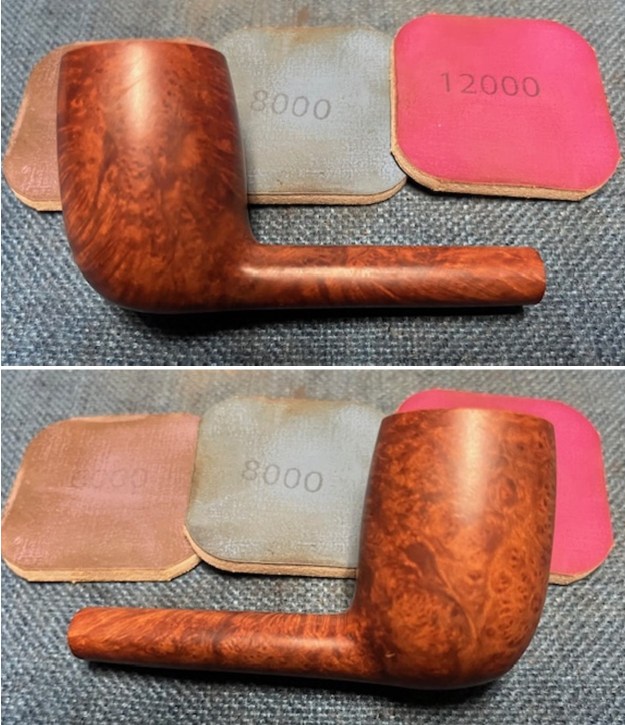 I polished the briar with micromesh sanding pads – dry sanding with 1500-12000 grit sanding pads. I wiped the bowl down with a damp cloth after each sanding pad. The pipe began to take on a rich finish.