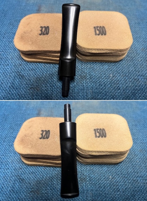 I sanded the stem with 320-3500 grit 2×2 inch pads. I wiped the stem down with an Obsidian Oil cloth after each sanding pad.