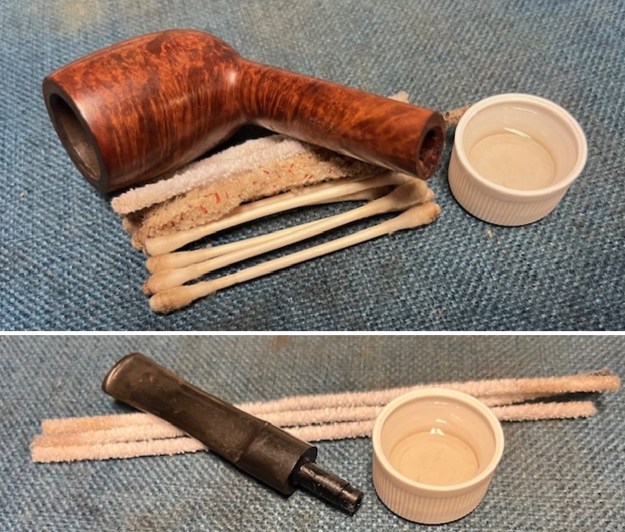 I cleaned out the inside of the shank and the airway in the stem with alcohol, cotton swabs and both bristle and regular pipe cleaners.