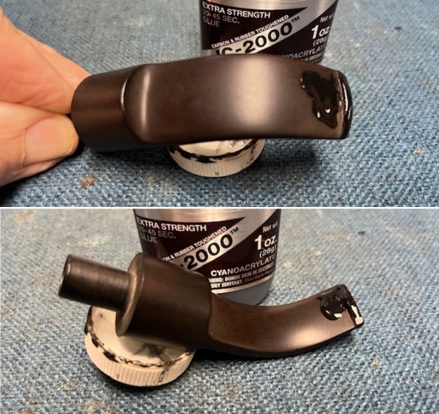 When I received it from Jeff this past week it did not look like the same pipe. It was clean and the finish had life. He reamed it with a PipNet pipe reamer and got rid of the cake. He cleaned up the reaming with a Savinelli Fitsall Pipe Knife so that we could see the walls of the bowl and assess for damage. It was in good condition. He cleaned the internals of the shank and stem with cotton swabs, pipe cleaners and alcohol. He scrubbed the exterior with undiluted Murphy’s Oil Soap and a tooth brush. He rinsed the pipe under warm water. He dried it off with a cloth and then let it air dry. The stem was scrubbed with Soft Scrub and soaked in Briarville’s Stem Deoxidizer. It came out looking very good. The finish on the bowl and the rim top cleaned up nicely. I took pictures of the pipe to show how it looked when I brought it to the table. I took some photos of the rim top and stem to show the condition of them both when the pipe arrived. Overall the briar looked good. The vulcanite stem had some light tooth chatter and marks ahead of the button and on the button surface on both sides.I took a photo of the stamping on the underside of the shank. It is readable and in great condition. I removed the stem from the shank and took a photo of the pipe to show the look of the pipe.I took a photo of the filter tenon on the stem. It looked very good and I fit it with an adapter that converted it to a regular tenon. It is removable allowing the pipe to be smoked with or without a filter.I sanded the sides of the bowl and the rim top with 320-3500 grit 2×2 inch sanding pads to remove the scratching in the briar and smooth it out. It is a really beautiful piece of briar with some amazing grain around the sides, heel and rim top. I polished the bowl with micromesh sanding pads – dry sanding with 1500-12000 grit pads. I wiped the briar down after each pad with a damp cloth. The bowl is starting to look very good. I worked some Before & After Restoration Balm into the surface of the briar with my fingertips to clean, enliven and protect it. I let the balm sit for a little while and then buffed with a cotton cloth to raise the shine. The photos show the bowl at this point in the restoration process. I set the bowl aside and turned my attention to the stem. I wiped the tooth marks down with isopropyl alcohol and a cotton swab and then filled in the tooth marks with black CA glue. Once the repairs cured I used a small flat needle to smooth out the repaired areas on both sides of the stem. I sanded them with a folded piece of 220 grit sandpaper to blend them into the surface of the vulcanite. I fit the 9MM filter tenon with an adapter converting it to an unfiltered tenon. It is removable so it can be smoked with or without a filter.I touched up the BJ logo on the left side of the saddle stem. Once it dried I scraped off the excess and cleaned it up with a 600 grit sanding pad. It looked much better, though faint in spots.I sanded the stem with 320-3500 grit sanding pads. I wiped it down after each sanding pad with a damp cloth. By the final 3500 grit sanding pad the rim top had a shine.I polished the stem with micromesh sanding pads – wet sanding with 1500-12000 grit sanding pads. I wiped it down after each sanding pad with some Obsidian Oil. I finished polishing it with Before & After Pipe Stem Polish – both Fine and Extra Fine and buffed it off with a cotton cloth. This is a beautiful Bjarne Nielsen Large Bent Brandy Hand-Carved in Denmark with a filter saddle stem. It has a great look and feel. The shape fits well in the hand with the curve of the bowl and shank junction a perfect fit for the thumb around the bowl when held. I polished stem and the bowl with Blue Diamond polish on the buffing wheel. I gave the bowl and the stem multiple coats of carnauba wax. I buffed the pipe with a clean buffing pad to raise the shine. I hand buffed it with a microfiber cloth to deepen the shine. The pipe polished up pretty nicely. The rich combination of browns in the smooth finish took on life with the buffing. The rich colour of the briar works well with the polished hard rubber stem. I like the grain and finished look of this Bjarne Nielsen Bent Brandy Hand-Carved. Have a look at it with the photos below. The shape, finish and flow of the pipe and stem are very well done. The dimensions are Length: 6 ½ inches, Height: 3 inches, Outside diameter of the bowl: 1 ¾ inches wide, Chamber diameter: 1 inch. The weight of the pipe is 169 grams/5.96 ounces. This one will be going on the rebornpipes store in the Danish Pipe Making Section shortly if you would like to add it to your collection. Thanks for your time.
