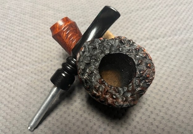 I fit the clean and polished stem with the Brigham Rock Maple Distillator and took photos to show what it looked like. This is in essence a hollow Maple wood tube that serves to filter out the moisture and deliver a clean and flavourful smoke.
