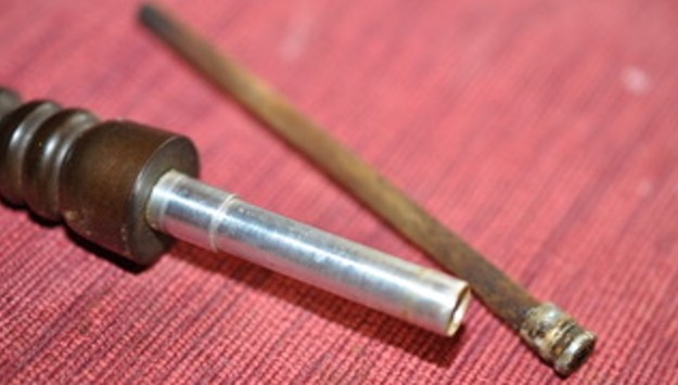 Jeff removed the stem from the shank and took photos of the distillator aluminum tenon. There was no maple filter in the tenon so the tube was filled up with tars and oils. The outside of the tube is also covered with tars as well.