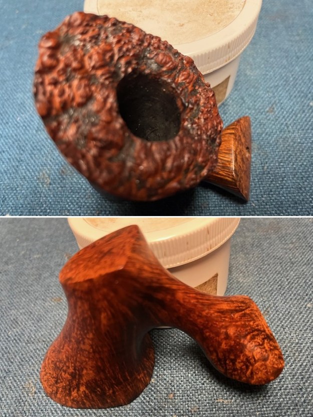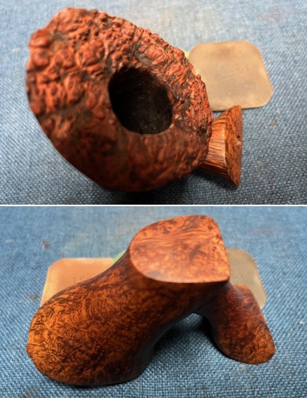 I took a photo of the stamping on the underside of the shank. It is clear and readable as noted above. I took a photo of the bowl and its new stem sitting with it to show the look of the pipe. It is a beautiful piece of briar.