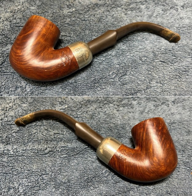 Next up is a pipe that came in a recent lot I acquired – and it is the classic Pete. This is a republic-era Peterson System Standard 1309 bent billiard. The smooth finish on it is really attractive and satisfying. Naturally, the stem has the time-honoured Peterson P-lip. The 1309 is exactly the same pipe as the 309 – the initial ‘1’ simply indicates that it was made for the Canadian market.