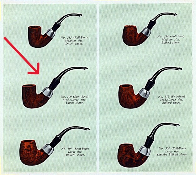 As usual, I owe a debt of gratitude to Mark Irwin of Peterson Pipe Notes. He has a very interesting article on the various System shapes and I highly recommend having a look here. In fact, regarding the 309, he says this: ‘As I’ve said many times, for me this is the Peterson shape.’ Here is a photo from his page: