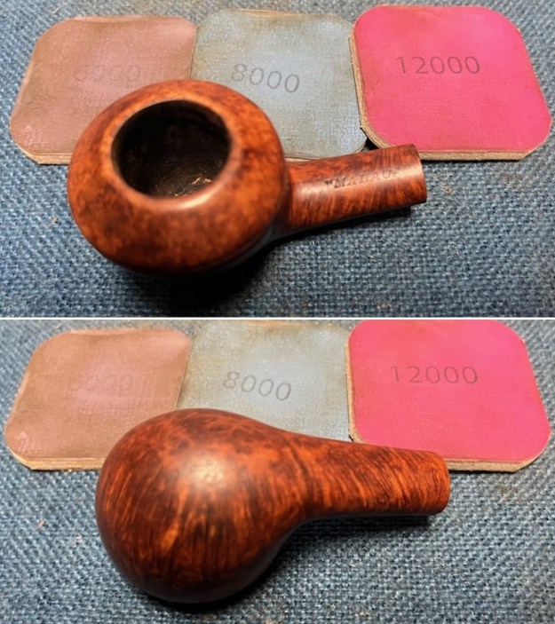 I polished the bowl sides and shank with micromesh sanding pads. I dry sanded it with 1500-12000 grit micromesh pads. I wiped it down with a damp cloth after each pad. It really began to look beautiful.