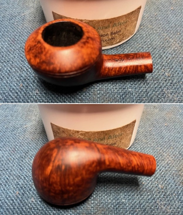 The photos of the sides and heel of the bowl show some stunning and unique grain on the smooth bowl and shank. The oil curing/finish makes the grain really stand out.