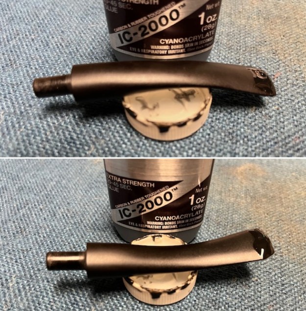 I set the finished bowl aside and turned my attention to the stem. I filled in the deep tooth marks on the top and the underside of the stem with a black rubberized CA glue. Once it cured I shaped it with small files and then sanded the repairs with 220 grit sandpaper to blend it into the vulcanite.