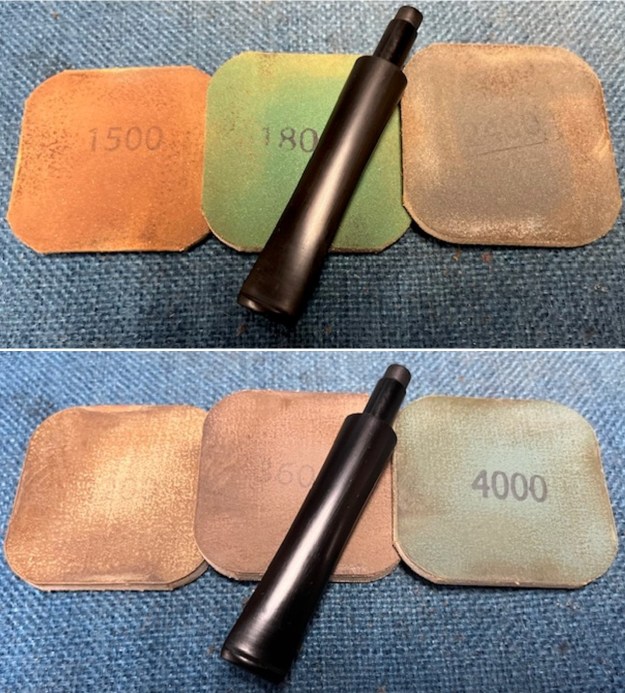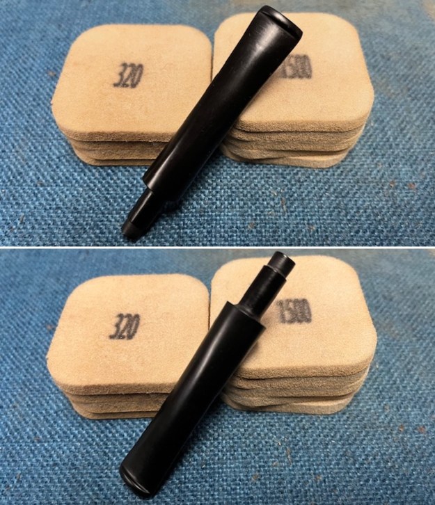 I sanded the stem with the 2 inch square 320-3500 grit sanding pads to remove the light tooth chatter and marks in the acrylic. I wiped down the stem after each sanding pad with Obsidian Oil. I was able to remove the marks and the stem looked very good.