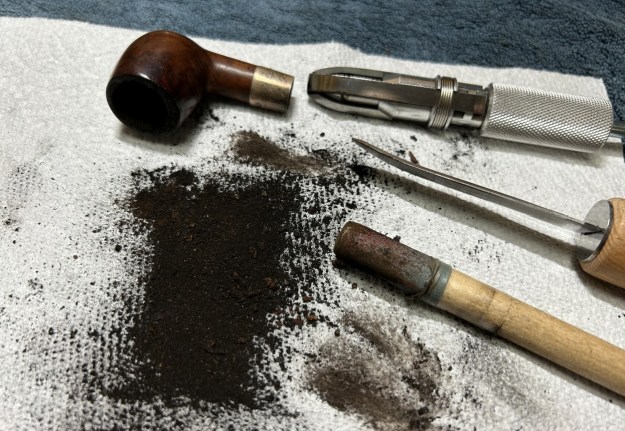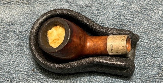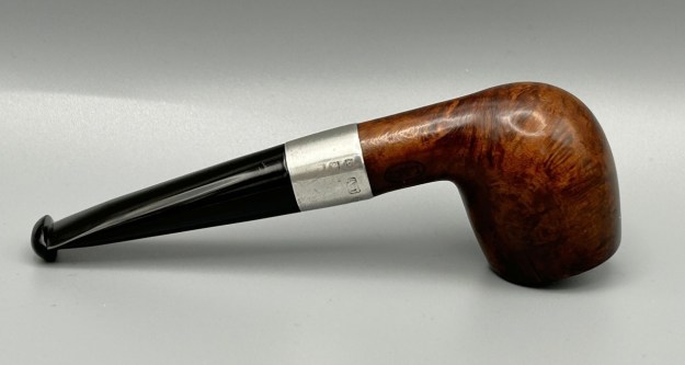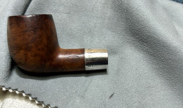I used isopropyl alcohol on a few cotton rounds and wiped down the stem to provide an initial cleaning of filth before moving on to the next steps. The primary cleaning came next. I disinfected the inside of the stem with both pipe cleaners and cotton swabs dipped in lemon-infused 99% isopropyl alcohol. I scrubbed thoroughly to make sure the interior was very clean. It was pretty darn dirty and I used quite a few pipe cleaners and cotton swabs.The goal of the next step is the removal (or minimization) of oxidation. Going to my sink, I used cream cleanser, cotton rounds, and a toothbrush, and scoured the stem to remove as much surface oxidation as possible. As the photos show, the result was a hideous, ochre-coloured mess – but better off the stem than on it.Once the stem was reasonably clean, I soaked it overnight in some Briarville Stem Oxidation Remover. This solution works to draw oxidation in the stem to the surface of the vulcanite. This is a major aid and an important step in ensuring a clean stem. The following day, I drew out the stem from its bath and scrubbed the lingering fluid with a toothbrush.The penultimate step for the stem is sanding. I used all nine of the micromesh sanding pads (1,500 through 12,000 grit) to sand out flaws, even out the vulcanite, and provide gentle polishing of the finished surface. I also applied pipe-stem oil while using the last five micromesh pads. There was a wonderful, deep black shine to the stem when I was done.As the stem was (nearly) complete, I moved on to the stummel. The first step was to ream out the bowl – that is to say, remove all the cake inside the bowl. This accomplished a couple of things. First (and most obviously), it cleaned the bowl and provided a refurbished chamber. Second, when the old cake was removed, I could inspect the interior walls of the bowl and determine if there was damage or not. I used a reamer, a pipe knife, and a piece of sandpaper taped to a wooden dowel. Collectively, these ensured that all the debris was removed. I was pleased to see that, aside from the aforementioned crack, the walls of the chamber were intact and solid (albeit heavily used).My next step was to remove the lava on the rim. For this, I took a piece of machine steel and gently scraped the lava away. The metal’s edge is sharp enough to remove what I need, but not so sharp that it damages the rim. This work revealed some notable wear, but nothing overly serious.Similar to the stem, I then cleaned the stummel with both pipe cleaners and cotton swabs dipped in lemon-infused 99% isopropyl alcohol. With a pipe this dirty, it took quite a while and much cotton to clean.I then decided to ‘de-ghost’ the pipe – that is to say, exorcize the remaining filth from the briar. I filled the bowl and the shank with cotton balls, then saturated them with 99% isopropyl alcohol. I let the stummel sit overnight. This caused the remaining oils, tars and smells to leach out into the cotton.To tidy up the briar, I wiped down the outside, using a solution of a pH-neutral detergent and some distilled water, with cotton rounds. I also used a toothbrush in the crevices. This did a good job of cleaning any latent dirt on the surface of the briar. The last step of the cleaning process was to scour the inside of the stummel with the same mild detergent and tube brushes. This was the culmination of a lot of hard work in getting the pipe clean. This also laid bare the crack inside the shank. Unfortunate, but it is what it is. I took the time to carefully clean and polish the silver band. I wanted to obviously remove the tarnish and grime, but without adding any wear to the already-heavily-worn band. I used some of the same pH-neutral detergent mentioned above and followed that by buffing it with my jewellers’ cloth. This worked very well and allowed me to finally decode the hallmarks, as discussed above. I have included a few detailed photos below. The marks are still hard to see, but they are there. I used a few micromesh pads (not all) to sand the outside of the stummel and finish it off. This sanding provides a beautiful smoothness to the wood. I rubbed some LBE Before & After Restoration Balm into the briar and let it sit for 30 minutes or so. The balm moisturizes the wood and gives a beautiful depth to the briar. I then buffed the stummel with a microfibre cloth. For the final step, I took the pipe to my bench polisher and carefully buffed it – just with three coats of carnauba wax. This procedure makes the pipe look its best – the stummel sings and the stem glows.All done! This Loewe & Co. Derby billiard looks fantastic again and I am delighted with the results. This is one pipe that I am going to be adding to my collection. Feel free to email me directly at  kenneth@knightsofthepipe.com. The approximate dimensions of the pipe are as follows: length 4⅓ in. (109 mm); height 1⅜ in. (35 mm); bowl diameter 1⅛ in. (30 mm); chamber diameter ⅔ in. (18 mm). The weight of the pipe is ⅝ oz. (22 g). I hope you enjoyed reading the story of this pipe’s restoration as much as I enjoyed restoring it. If you are interested in more of my work, please follow me here on Steve’s website or send me an email. Thank you very much for reading and, as always, I welcome and encourage your comments.