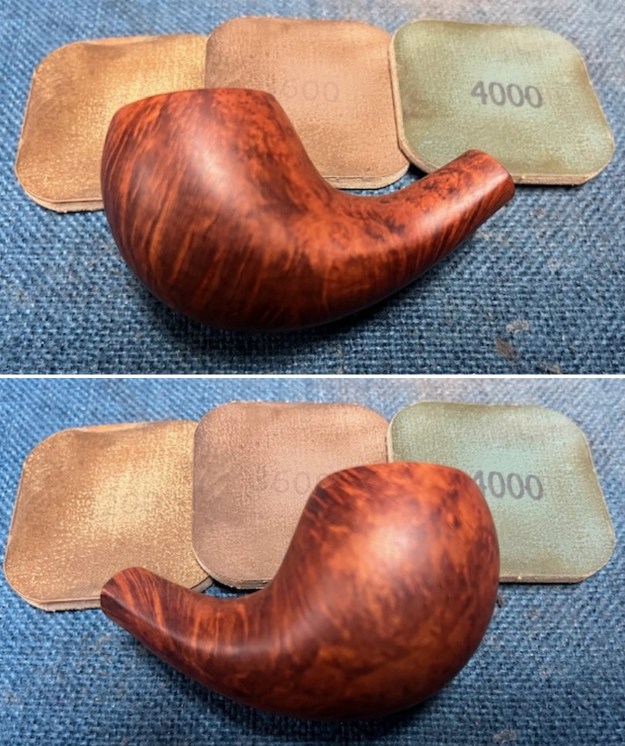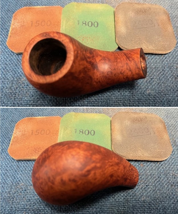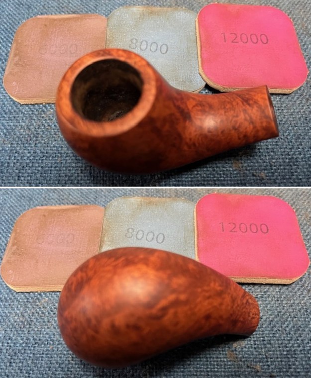 I polished the briar with micromesh sanding pads – dry sanding with 1500-12000 grit pads. I wiped the bowl down after each pad with a damp cloth to remove the debris.
